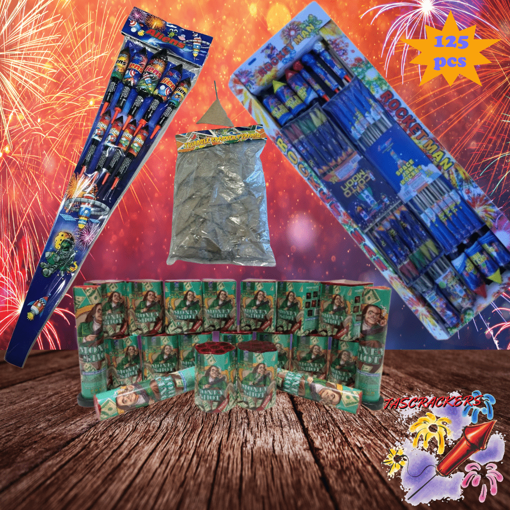 π₯ 125 Pieces of Pure Fireworks Variety β Multi-shot cakes for the main event, single-shot tubes for punchy highlights, rockets for sky-high thrills, and crackers for heart-pounding sound.